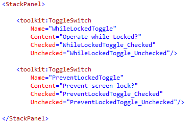 In the code above, see the ToggleSwitch? That control is the standard Windows Phone checkbox. However, it is not a standard Windows Phone control. If you want the ToggleSwitch in your application, download our free Silverlight Toolkit for Windows Phone @ CodePlex.