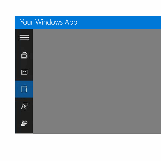 To me, it is a real pain that the SplitView does not ship with any visual. I can respect the philosophy of not pushing me toward a certain look or feel, but most Windows apps that elect to use the SplitView probably want to use a specific look and feel common in all apps (not all, just many). This means we must build our own implementations and styles from scratch.So I did it.