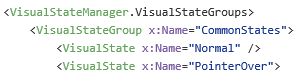 One of the things you might have noticed is that there are five possible background colors across three states. Yikes! Although any control can have more than one active visual state, there is no logic to determine, “If I am selected then use this HoverColor, else use this HoverColor.” This is a dilemma. It shows how (unfortunately) style retemplating is insufficient to accomplish exactly what we want. With enough time and money, everything is possible. Let’s solve this.